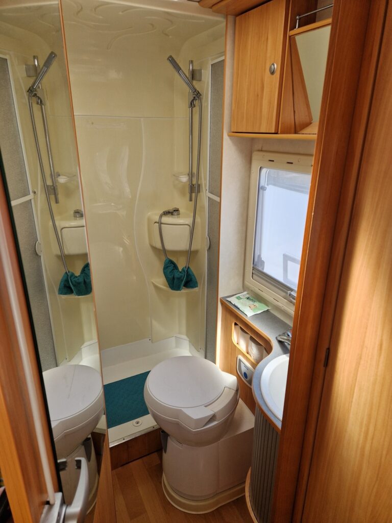 Fully functioning bathroom with Thetford Cassette Toilet, sink and step in shower cubicle to help refresh you for the day ahead.